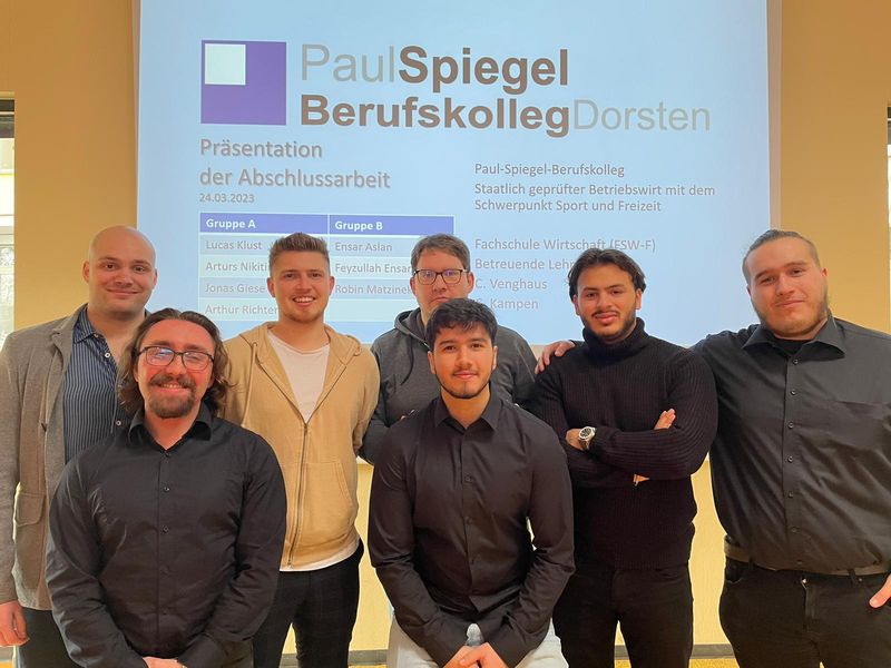 Am Freitag, den 24.04.2023 hat die diesjährige Abschlussklasse der staatlich geprüften Betriebswirte am Paul-Spiegel-Berufkolleg ihre Präsentation der Projektarbeiten vor einem interessierten Publikum in der Pausenhalle durchgeführt.